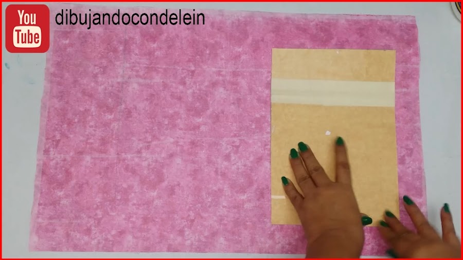 Voy a colocar esta pieza de carton sobre la tela o papel que voy a utilizar fara forrar mi libreta, deben dejar un espacio mas o menos 5cm de distancia en el contorno, luego que coloquemos nuestra pieza con pega en el papel o la tela, vamos a tomar las tablillas que utilizamos anteriormente y vamos a pasarla por el derecho de la tela para asegurarnos que no quede ninguna burbuja de aire, arruga o exceso de pega.
