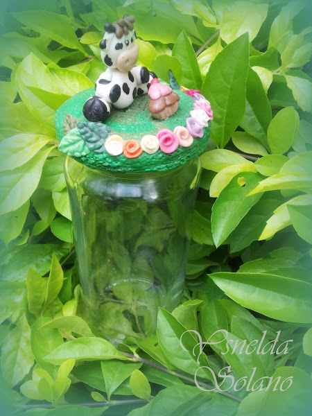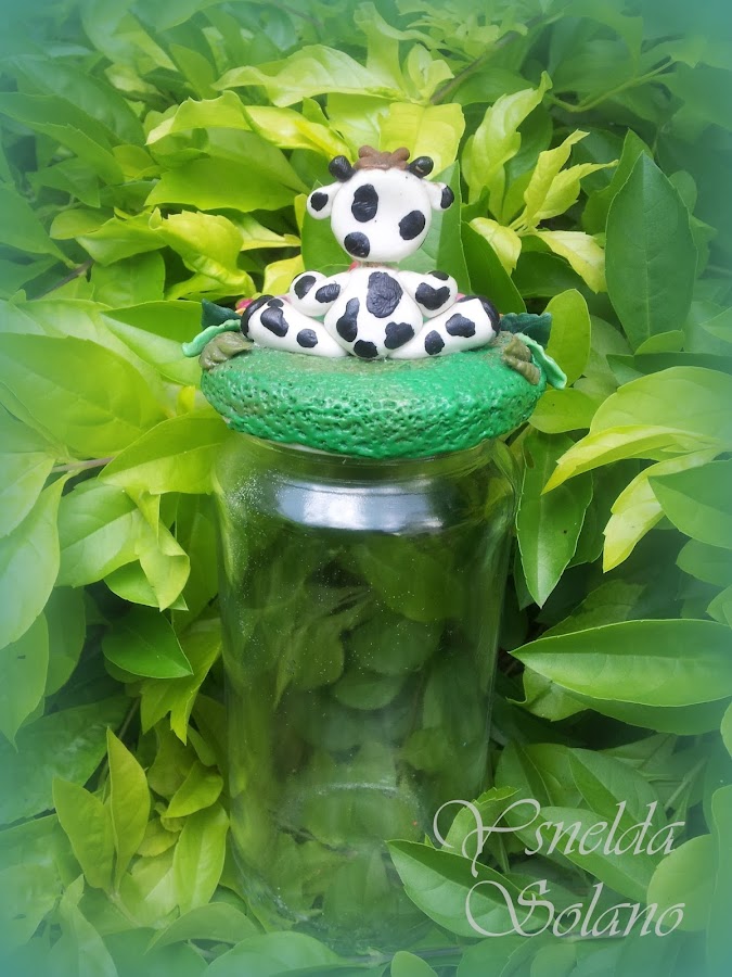 Con tan sólo una pequeña porción de porcelana fría, podemos recuperar uno de nuestros frascos vacíos, que tanto nos gusta acumular. Se trata de decorar la tapa del mismo, con una pequeña vaquita con su mini cupcakes.