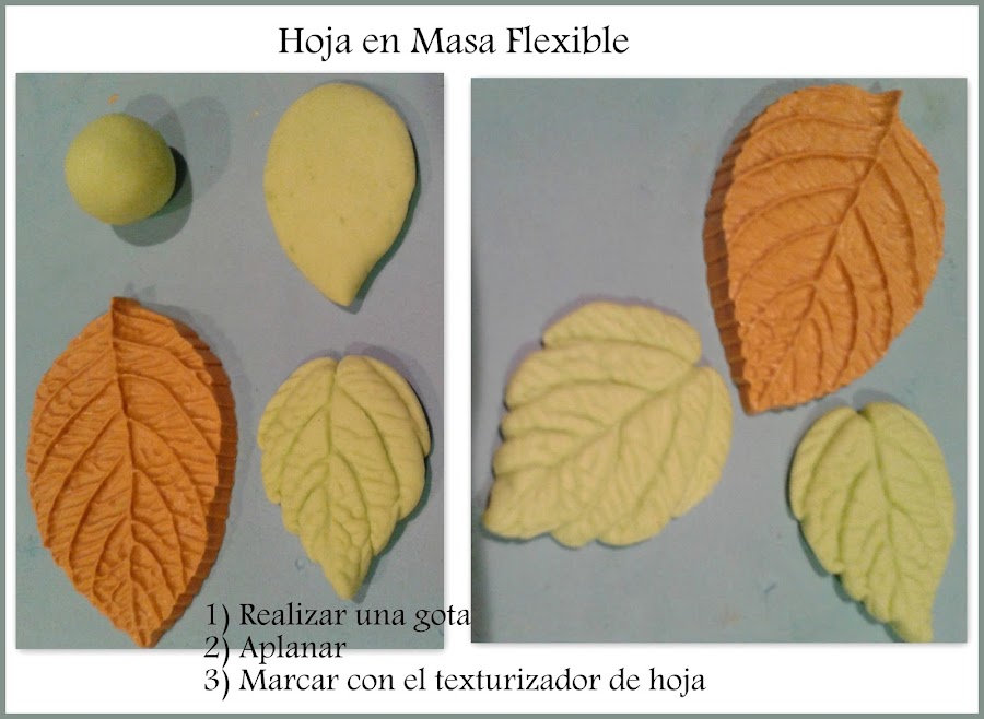 *Hojitas y flores de colores en porcelana fría, previamente realizadas.
