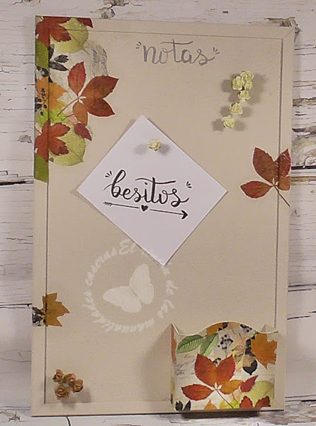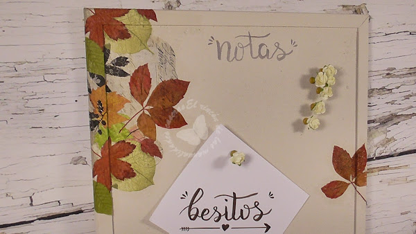 Ya sólo nos queda pegar nuestro cajón de cartas al tablón y como estoy empezando a aprender lettering (que por cierto me encanta), le he escrito la palabra "notas" en el tablón para decorarlo un poco más.