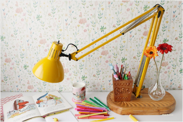 Una auténtica pieza vintage con un diseño que no pasará nunca de moda y un alegre amarillo que le da un toque de calidez al escritorio.