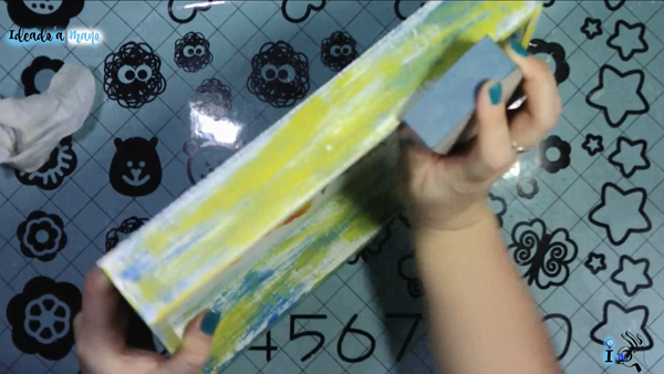 Cuando haya secado, que tarda poco, lijamos para hacer el efecto decapado, que a mi me encanta, y en conjunción con el efecto de los brochazos me gusta mucho como queda.