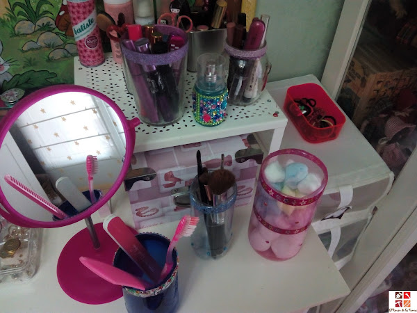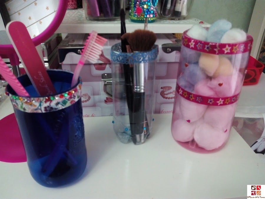 cortar, planchar...siiii...he dicho planchar, pero ya lo veréis más abajo, algún que otro adorno y ya están listas organizando pinceles, algodones y demás en la habitación de mi hija .