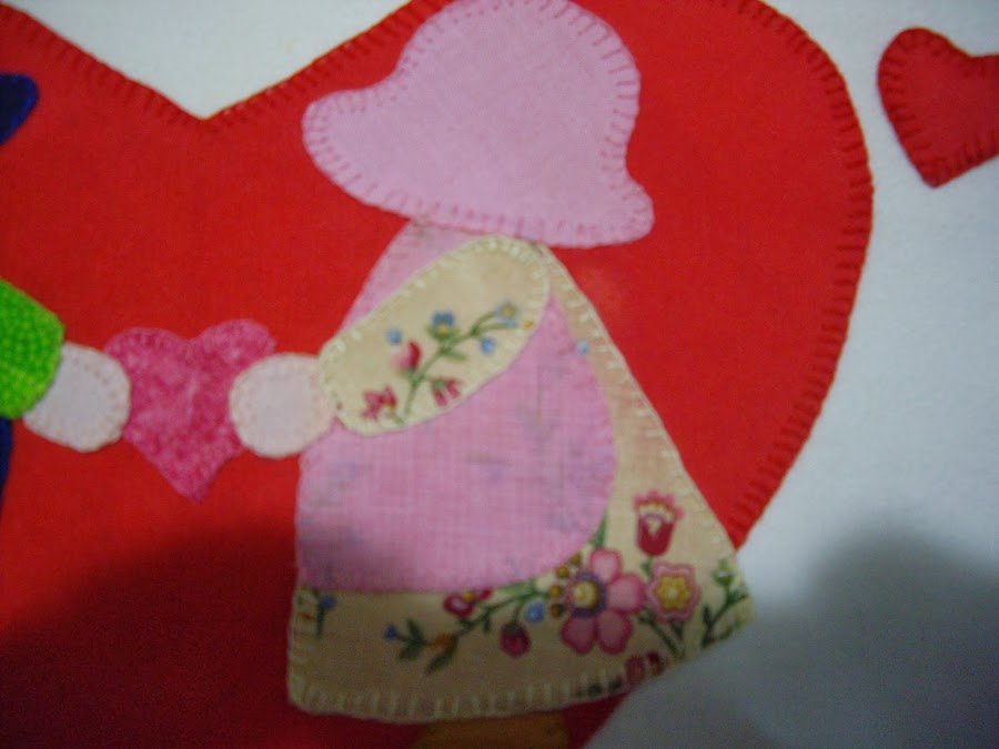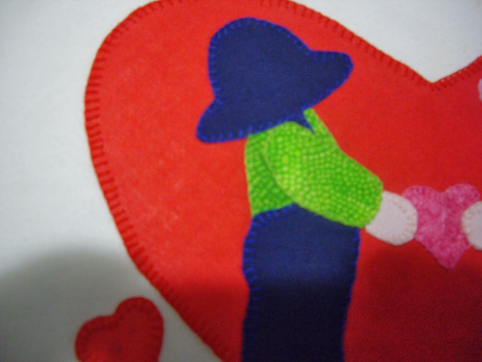 Yo lo que hice fue coser con punto feston todo el borde del corazon para luego poder colocar encima las otras figuras y que no sean tan dificiles de coser . Es importante rematar todo el trabajo con punto feston, a mano, o coserlo a maquina, asi nos aseguramos que nuestro trabajo sea duradero. y TAAAA TAAAAMMM, trabajo terminado!!!!!!!!!....