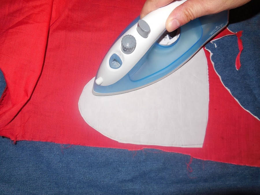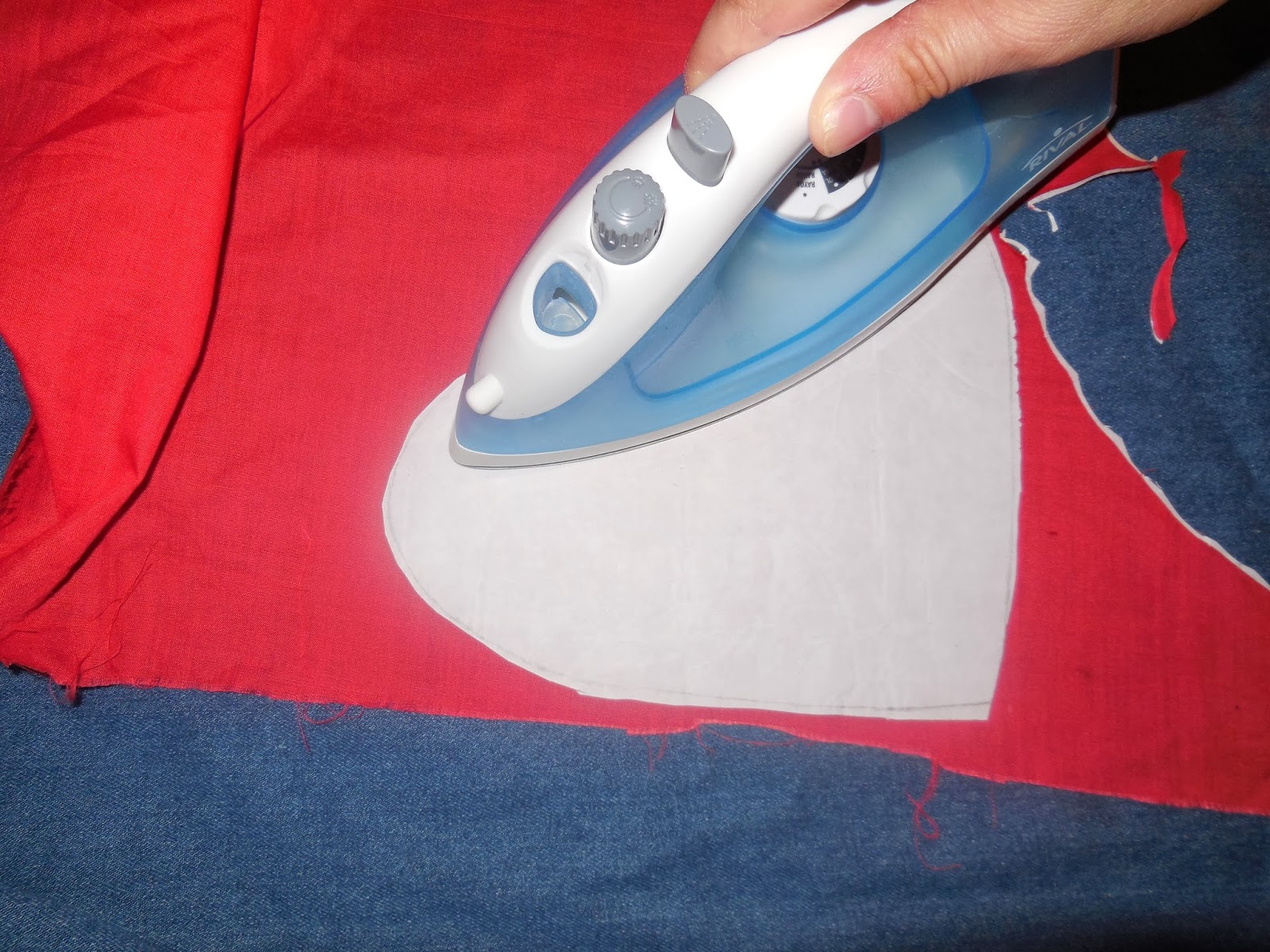 Una vez que hemos recortado los patrones, los debemos aplicar con el calor de la plancha sobre la tela elegida... Hay que fijarse bien cuando realizamos este paso, de colorcar la parte del papel que queda visible con pegamento sobre la tela, si lo ponemos al reves luego tendremos que limpiar la plancha y marcar nuevamente nuestra figura...