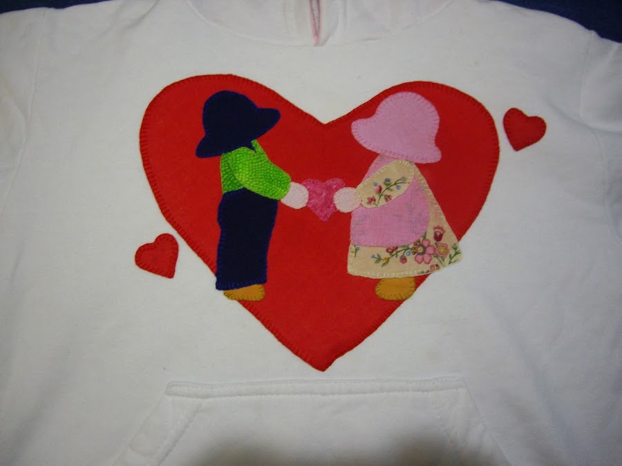 Hola, hoy les quiero dejar como recicle una sudadera. Una de mis primas no tuvo mejor idea que regalarle a mis hijas sudaderas de color blanco, sinceramente se veian hermosas, y cuando ellas las usaban mas aun. Pero como todos saben, el color blanco para ropa de mucho uso en los chicos no es muy recomendable. Y si...paso lo que tanto temia, las mancharon, y no hubo forma de quitarles las manchas. Asi que se me ocurrio reciclarlas, tenia que encontrar alguna forma de poder tapar esas manchas. Si bien las manchas seguirian ahi, por lo menos ya no se verian, y ese era el proposito de mi proyecto, asi que tome cartas en el asunto y puse manos a la obra.....aqui les muestro como quedaron....