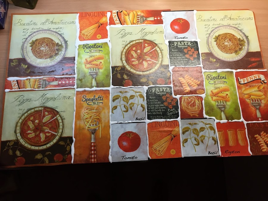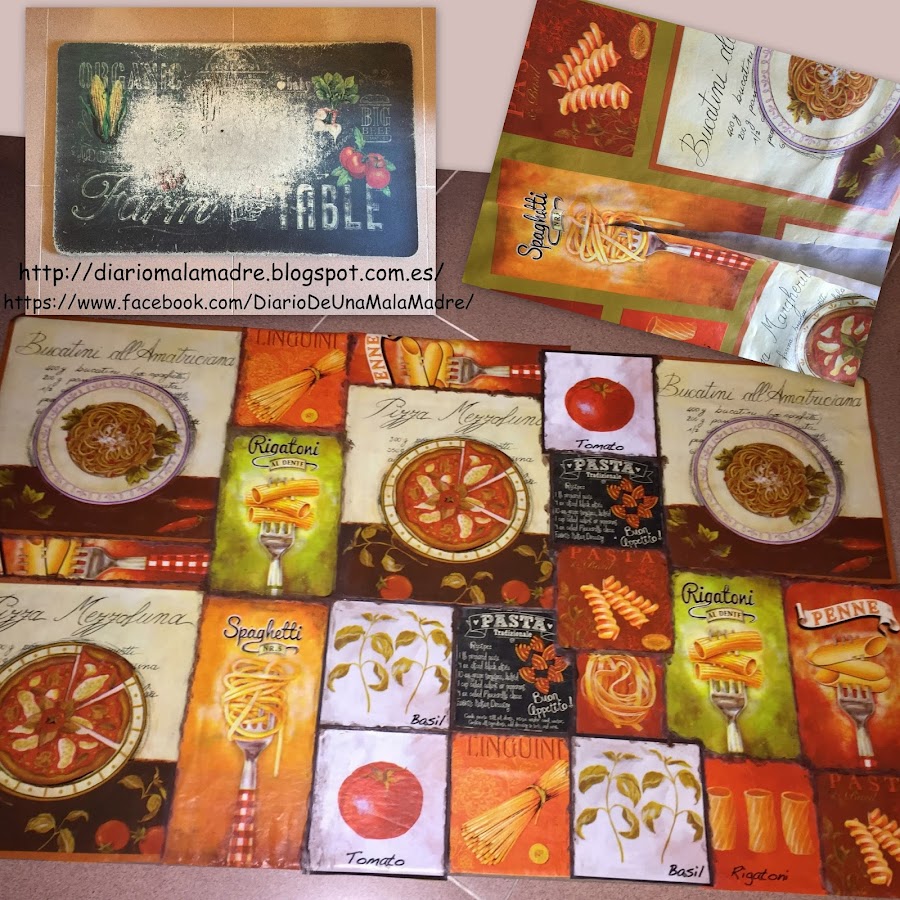 Limpio bien la alfombrilla y coloco las imágenes encima formando un collage. De momento