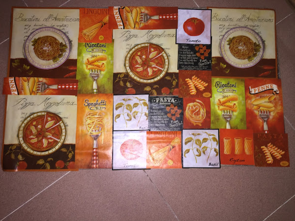 Al hule le despego la "telilla" blanca que tiene por debajo y voy recortando los recuadros que no estén nada dañados de los distintos motivos que aparecían en él.