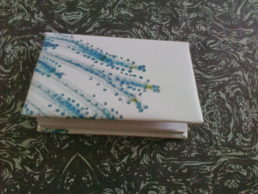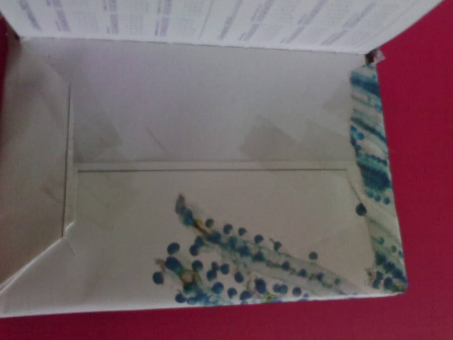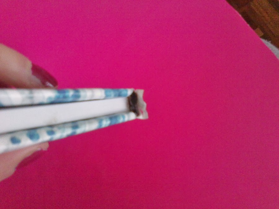 2)Forro las tapas con cuidado, especialmente en las esquinas y pego la fotografía con celo.