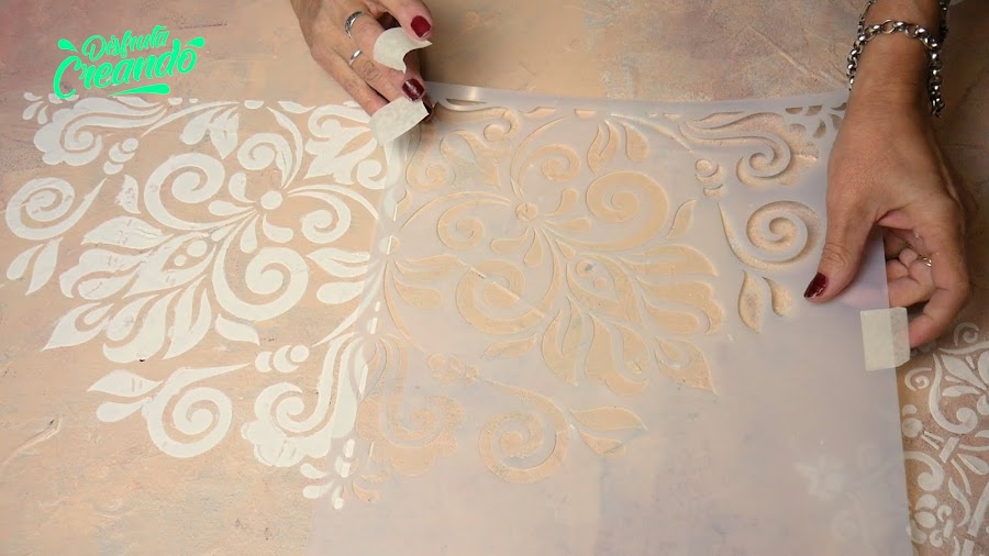 Se apoya el stencil haciendo coincidir el centro, lo sujeto con cinta de papel .