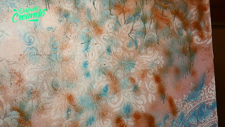 También pueden apreciar los matices de colores y las salpicaduras que había realizado con los spray.