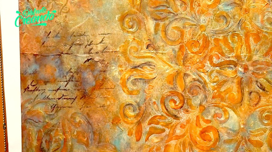 El aspecto que quedó es como si fuera un cuadro antiguo, desgastado, como mal guardado y me gusto como quedaron lo tonos óxidos, envejecidos.