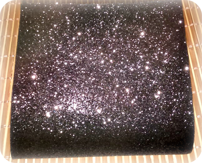 Esta es la goma eva que voy a utilizar , negra con purpurina .