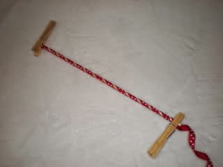 Enrollamos en el pincho la cinta y colocamos las pinzas a cada lado para sostener la cinta.