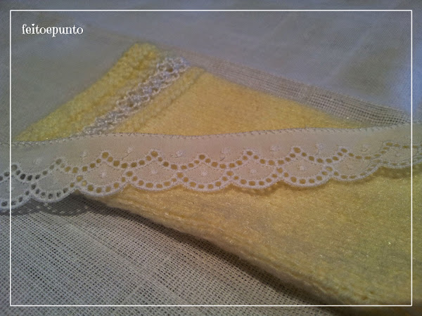 En este caso la puntilla es una tira bordada de las que no vienen rematadas por el borde que tenemos que coser.
