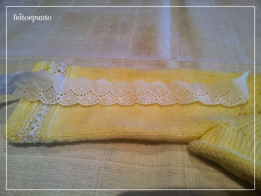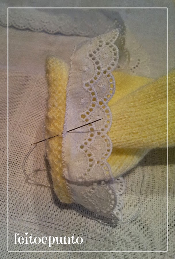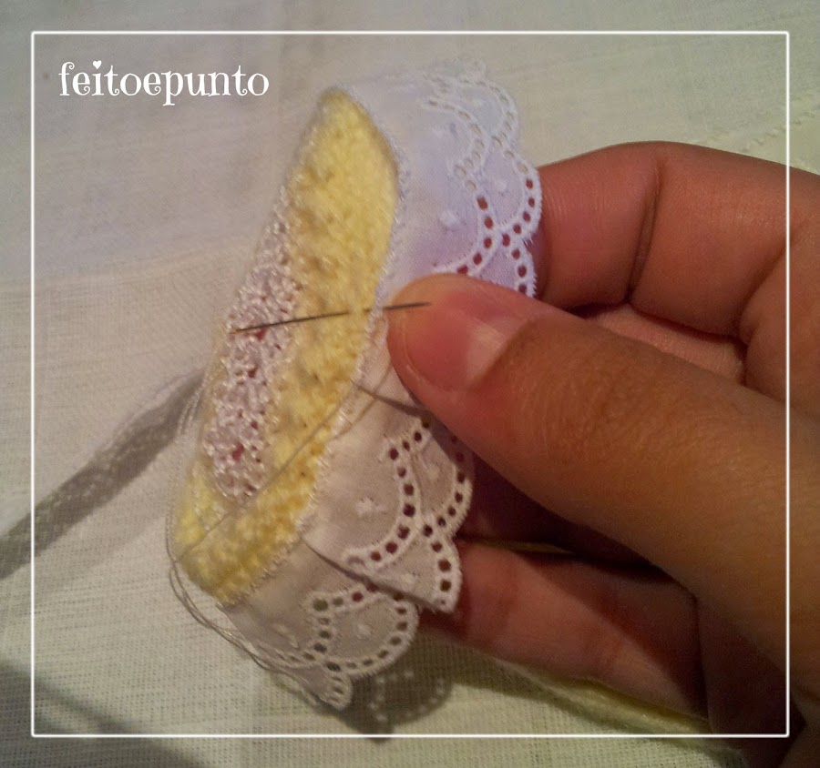 Y terminamos cosiendo el final de la puntilla al extremo del principio, que habíamos doblado hacia dentro.