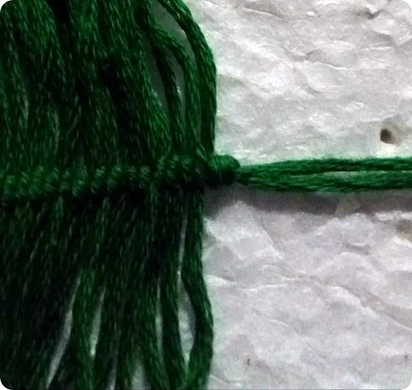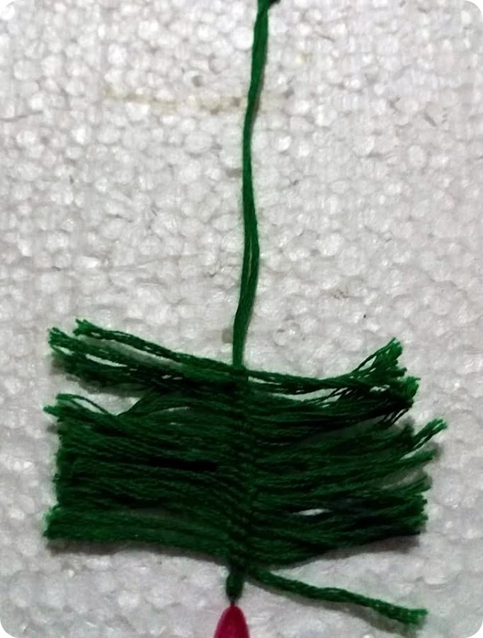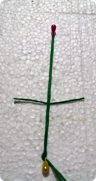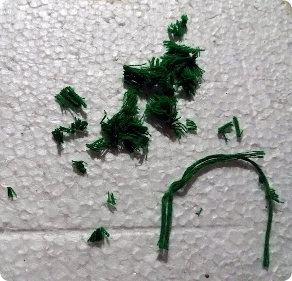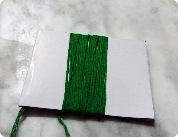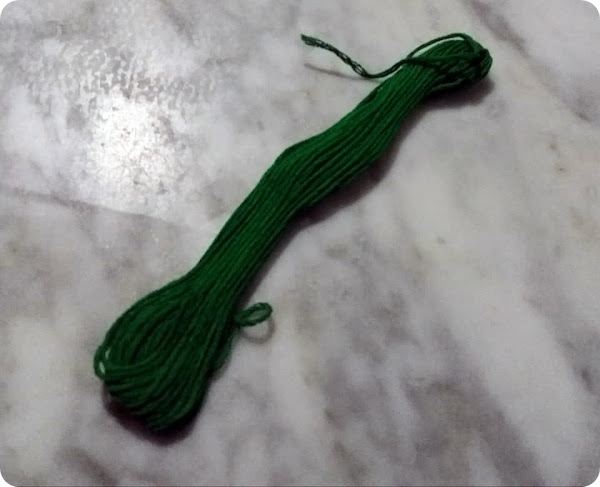 Como estoy en modo prueba , de ninguna manera voy a estropear una madeja de hilo DMC , así que para esta prueba he comprado en un bazar hilos , que ya he utilizado en otras ocasiones , me queda este verde que me sirve perfectamente.