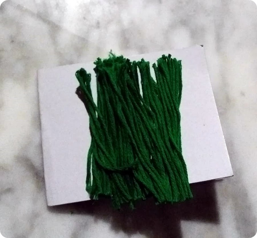 Con la ayuda de un trozo de cartón vamos a cortar una pequeña cantidad de hilos de la misma medida , conserva el cartón y gestiona el aprovechamiento máximo de los hilos , siempre se pueden cortar más si los necesitamos.