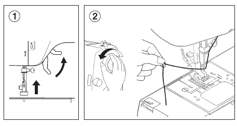 3.- Tiramos ligeramente del hilo superior y recoger el hilo y recogemos el hilo de la canilla que saldrá a través de abertura de la placa de agujas.