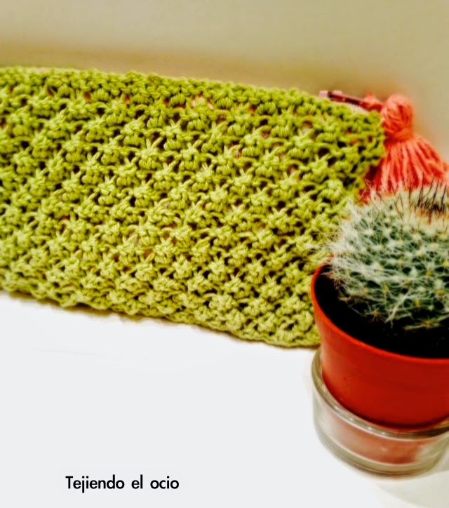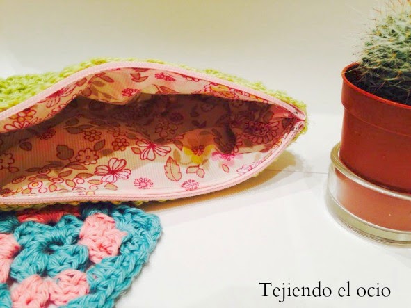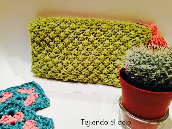 Este neceser mide 18 cm de ancho y 15 cm de largo, pero vosotras lo podeis hacer del tamaño que mas os guste. Este punto es tan bonito que queda bien en cualquier prenda que hagáis.