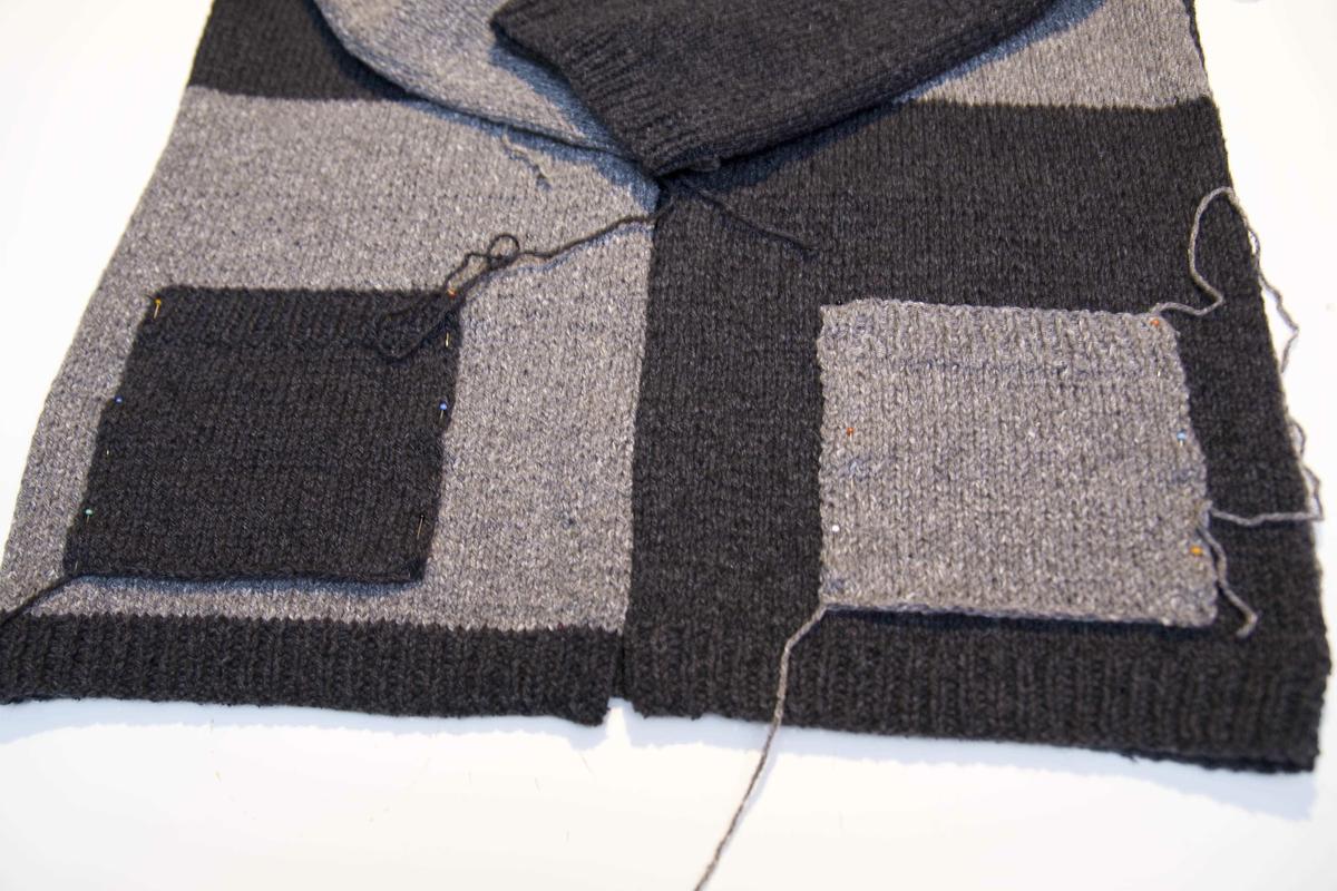 Y tejemos y cosemos los bolsillos contrastando los colores.