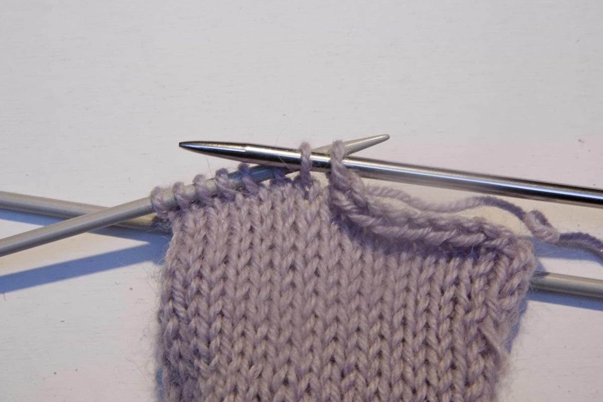Giramos la labor y seguimos de la misma manera, los puntos que están del derecho se tejen del derecho y los que están del revés se pasan sin hacer pero colocando siempre la hebra por delante de la labor.