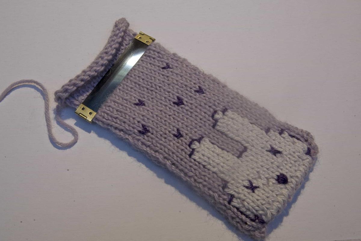 Para evitar que las patillas de las gafas se enganchen con el tejido, he cosido una pequeña bolsa de tela y la he fijado en el interior de la bolsa de lana.