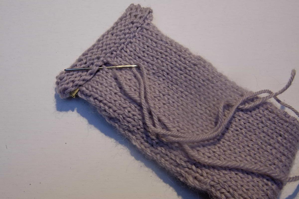 Una vez que tenemos el alto necesario, sacamos los puntos de la aguja y separamos las dos caras de la bolsa.