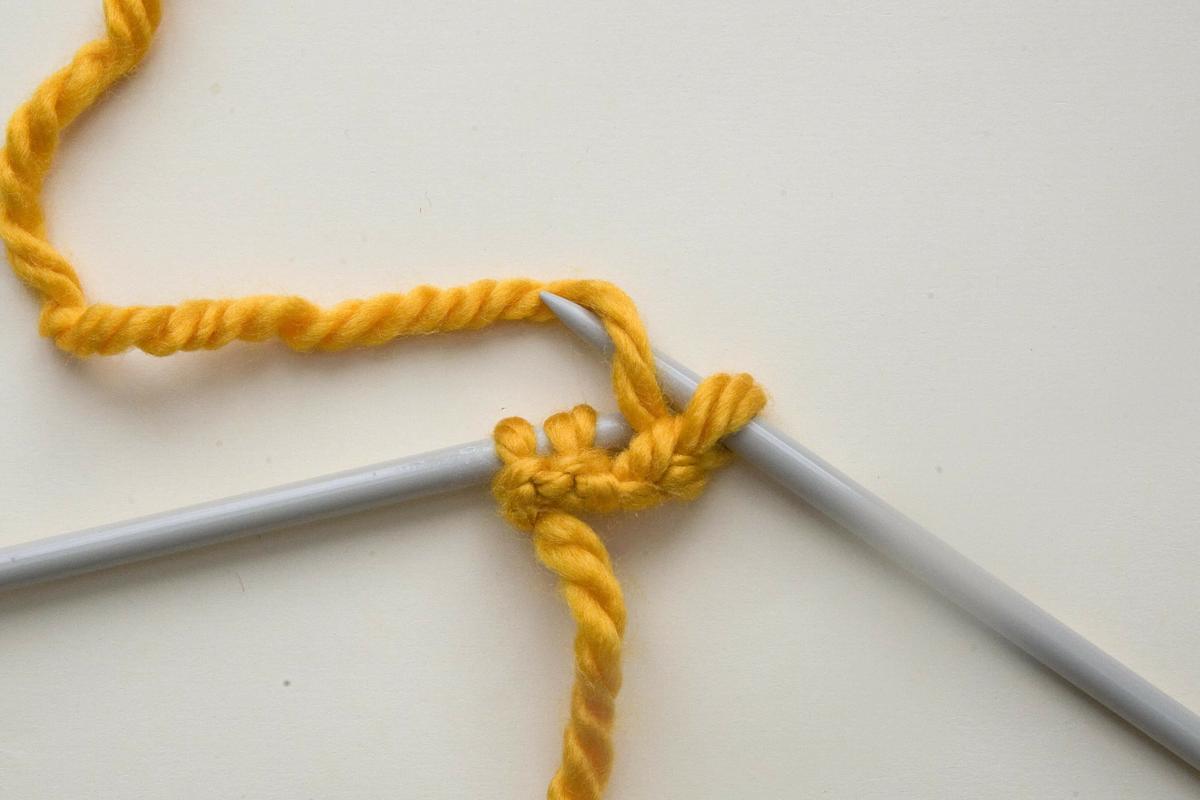 Se comienza montando tres puntos y tejiendo la primera vuelta del revés