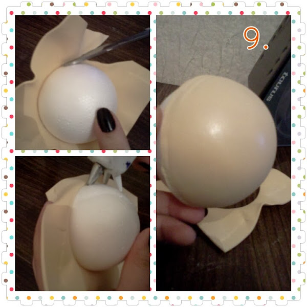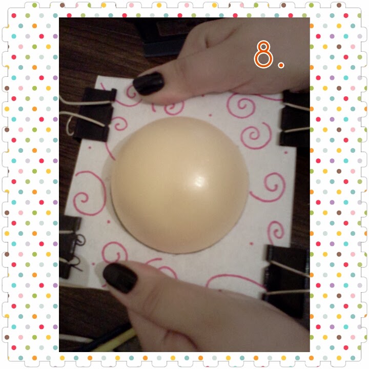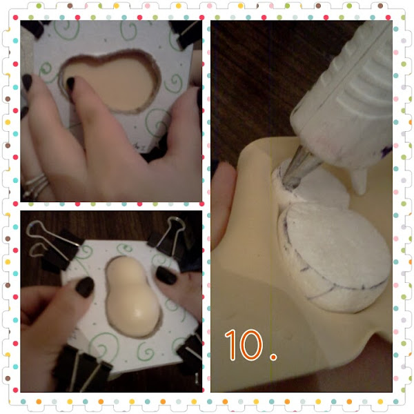 9.Quita los sujeta papel y saca la bolita por arriba del molde,pega y recorta los sobrantes,te daras cuenta que casi no desperdisias tanto foami como antes...