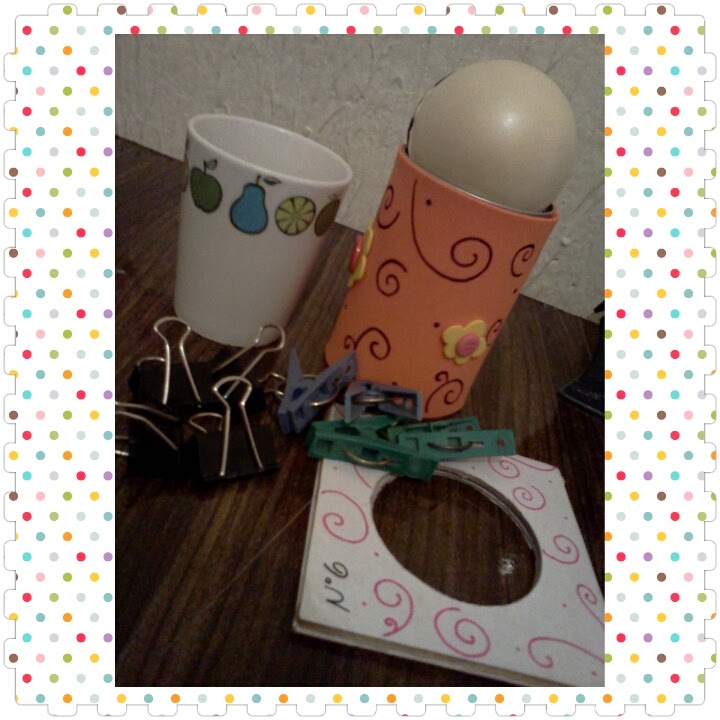 si no tienes sujeta papeles puedes ayudarte de pinzas (ganchitos) para ropa,en casa tenemos un monton de herramientas que nos sirven de maravilla a la hora de realizar nuestras fofuchas.....por ejemplo una taza o un bote nos vienen de lujo a la hora de termoformar ya que nos sirven de base para la bolitas de unicel....