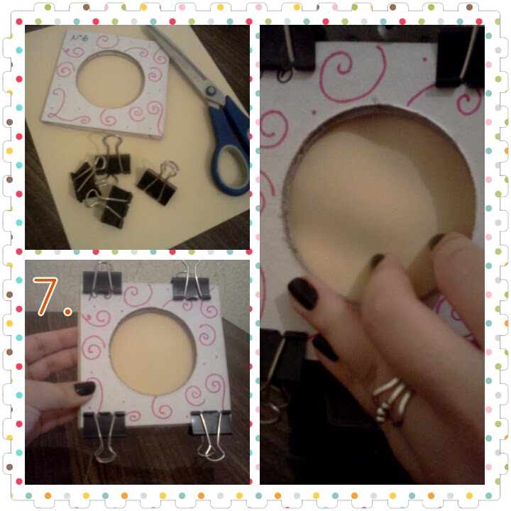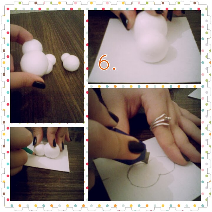 3.Con ayuda de un compás traza un circulo segun la medida de la bolita y corta con ayuda de tu exacto (cuter) o tijeras.