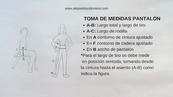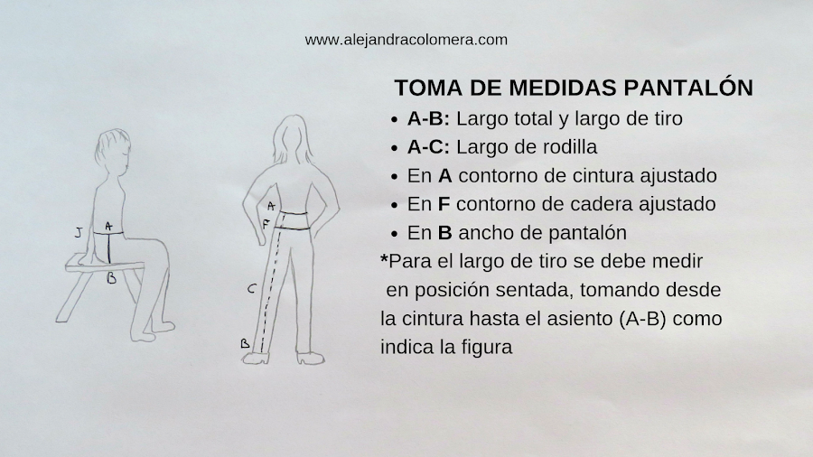 Hoy te enseño a tomar las medidas que necesitarás para hacer el patrón del pantalón. Aparte de algunas medidas que ya vimos anteriormente, necesitarás unas nuevas, que son específicas para el pantalón.