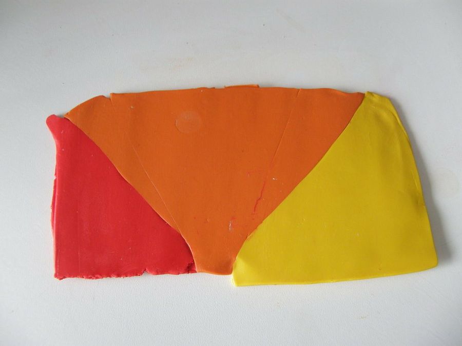 Eleojota comienza por el degradado. Ha elegido tres colores, rojo naranja y amarillo, montados en forma de triángulos. "Los pasamos por la máquina de pasta como unas 20 veces, en el mayor grosor y doblando siempre en el mismo sentido".