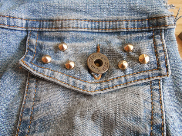 Después de pintar le he añadido unas tachuelas en la parte delantera de los bolsillos.