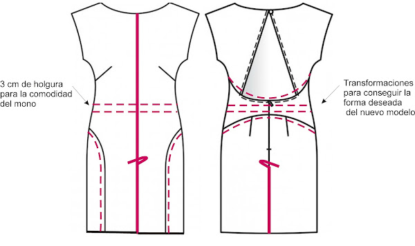 Importante: Sumamos 3cm a esas piezas del delantero y de la espalda, será la zona de holgura, que necesitamos dejar para que nuestro mono sea cómodo y nos permita mantener la forma sin ser demasiado holgada.
