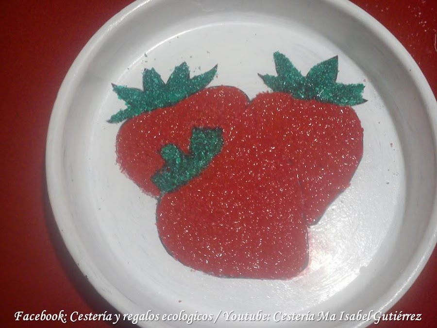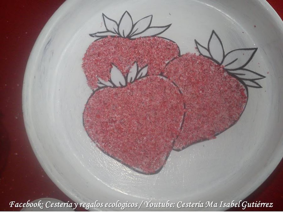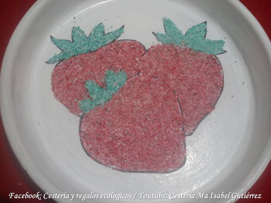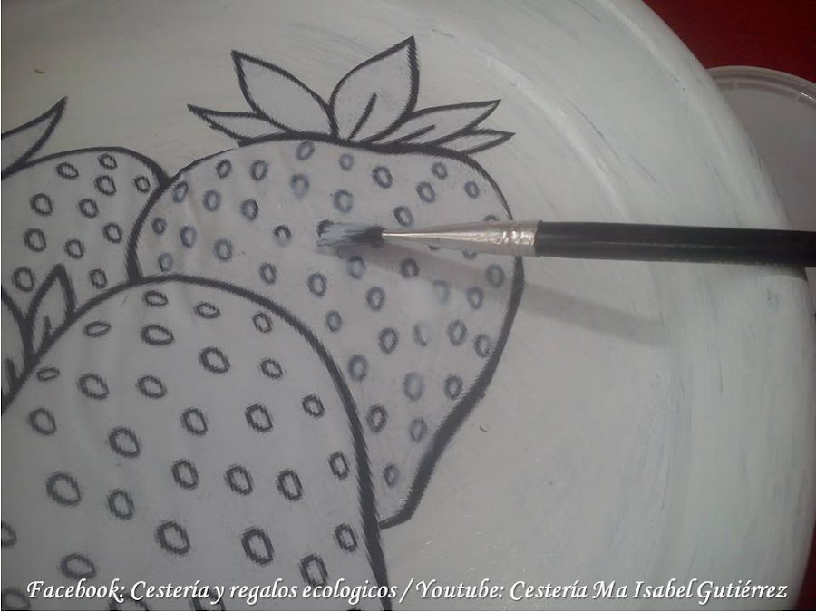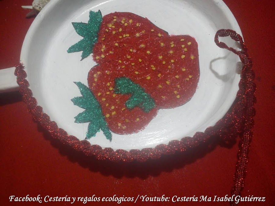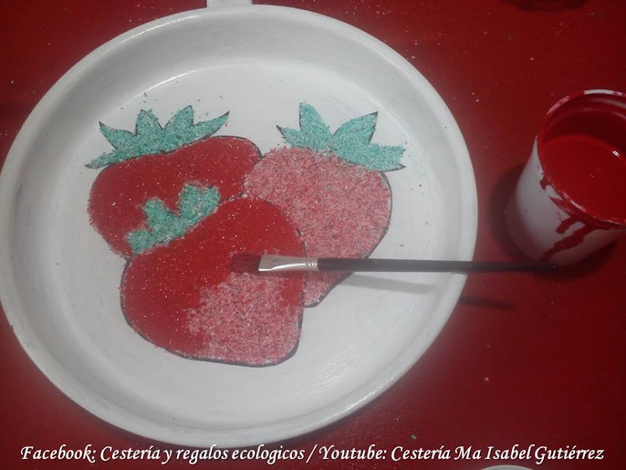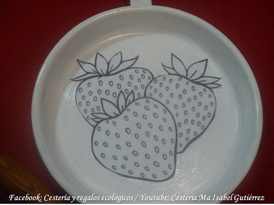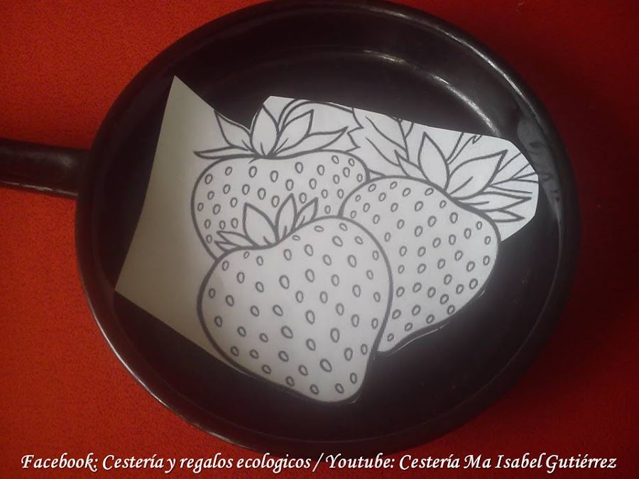La imagen de las fresas (o la que tu gustes) las conseguimos en internet, imprimimos y recortamos de manera que podamos pegar dentro de la sartén...