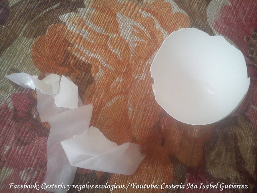 Sacamos el cascarón del agua, quebramos un trocito de la orilla y de ahí tiramos la telita interna que tienen los cascarones...