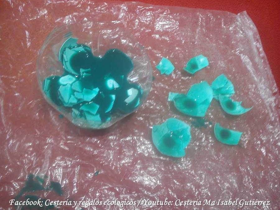 Sacamos los cascarones de la pintura y los extendemos sobre hule o plástico de forma separada hasta que sequen bien...