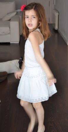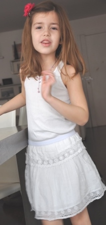 Bueno, al final he conseguido sacar alguna decente en la que se puede ver cómo le queda la falda. A mi me encanta el resultado. Además, blanca y con puntillas, queda una falda de lo más veraniega y bonita.