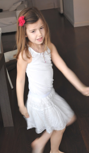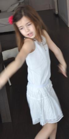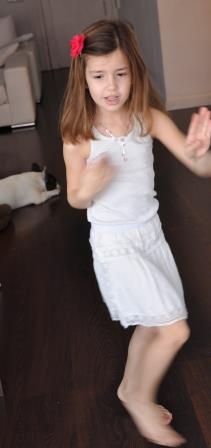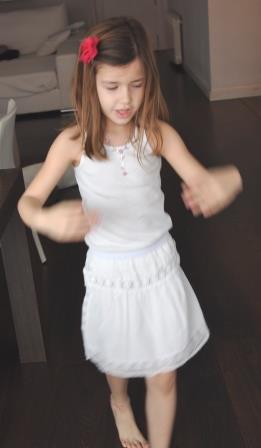 Se la probé para ver si le quedaba bien y le dio por ponerse a bailar, así que le saqué unas fotos. Aunque he de confesar que la gran mayoría salieron movidas. `Porqué no se estarán quietos estos niños????