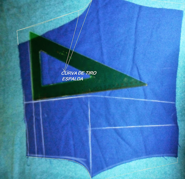 El ancho de espalda es clave, si el total es 25 se necesita la mitad que son 12 1/2 con ésto automáticamente tenemos la altura de la siza. El hombro automáticamente nos da dividiendo los 12 1/2 en 3 para el cuello que son 4 y unos puntos, para la espalda bajando 2, y para el delantero haciendo la curva lo mismo 4 por 4