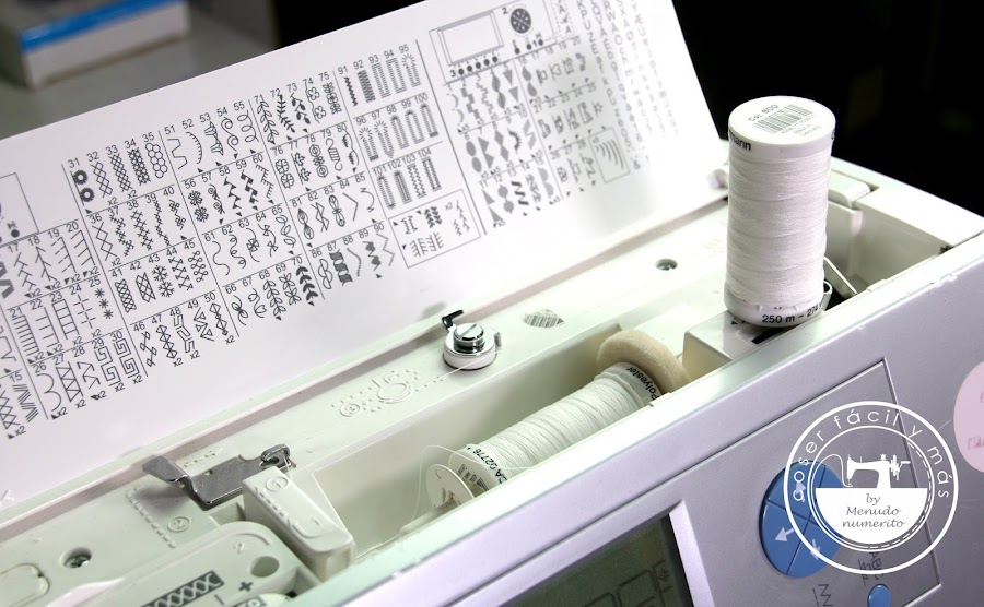 Como tenemos dos agujas, necesitamos también dos carretes de hilo, es importante que uses la misma calidad de hilo para estos dos carretes o bobinas.