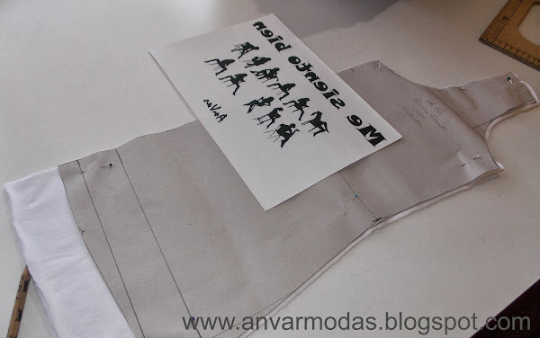 Con la pieza cortada, pero antes de armar la remera, marco exactamente a dónde quiero alinear el dibujo y coloco el papel con la impresión hacia abajo. Dependiendo del diseño a estampar, se debe recortar la imagen lo más exacta posible. En mi caso yo no lo hice porque quería que se vea como un cartel, pero si no es esa tu idea, debés recortar porque donde no hay impresión el papel se nota sobre la tela.