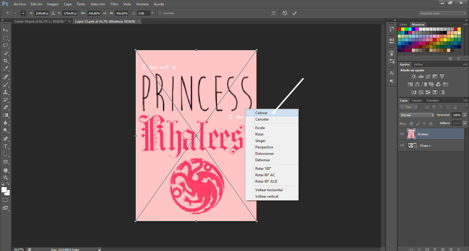 Vemos que tiene una vista algo borrosa... para evitar esto hacemos clic con el botón derecho del ratón y elegimos Colocar.