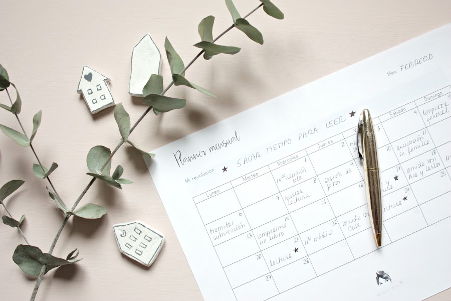 Antes de dar por terminada tu planificación, revisa todo bien, piensa en los tiempos que te llevará cada tarea, es importante ser realista en este sentido para que cumplir tu plan sea sencillo y agradable. Después, colócalo en un lugar visible, la nevera, tu escritorio o el cuarto de baño si es preciso!! Pero tiene que estar a la vista. Si un día no puedes realizar una tarea, reubícala en tu calendario o aplázala para el mes siguiente. No pasa nada, pero acuérdate de buscar otro momento para hacerla. Y muy importante: tacha en tu planner cada tarea realizada! La sensación de estar cumpliendo tu plan previsto te animará a seguir adelante y te ayudará a cumplir tu objetivo.