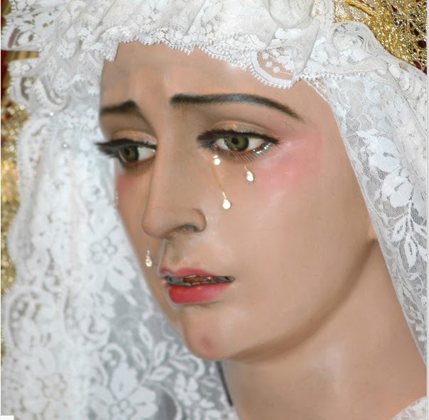 Es en el rostro, donde el imaginero busca plasmar ese sentimiento o esa expresión de tristeza características de las Vírgenes Dolorosas, y es también donde contrae o acentúa ciertas partes y ciertos rasgos anatómicos con el fin de provocar la devoción del fiel. Ese sentimiento de tristeza es extremadamente difícil de conseguir si tenemos en cuenta que esa expresión aflictiva debe de aplicarse a una cara suave y de profunda belleza, donde las estridencias están fuera de tono y no tienen lugar.