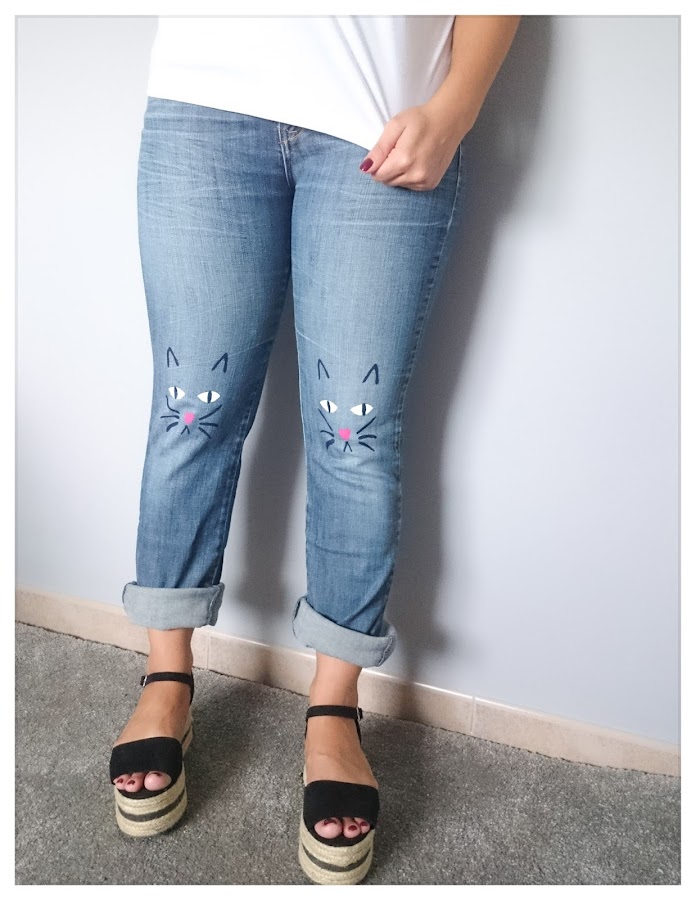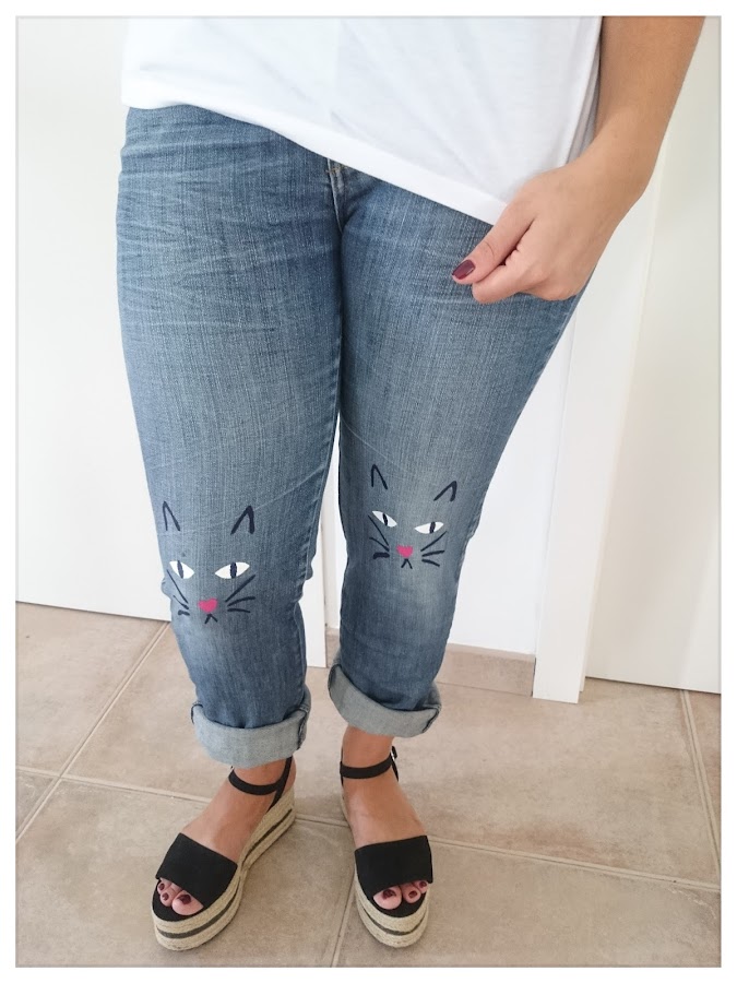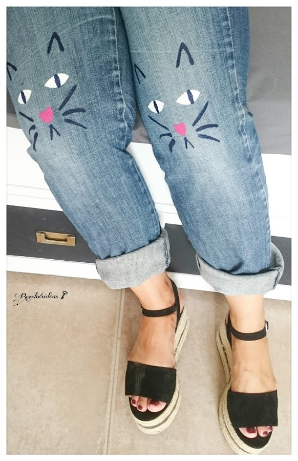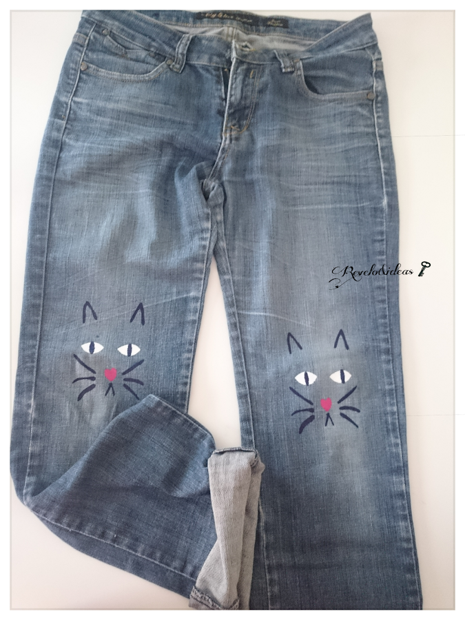 En esta ocasión os traigo un tutorial, de como actualizar unos viejos jeans pasados de moda y transformarlos en otros mucho mas actuales y molones, desde que vi unos parecidos en una conocida marca de venta online me enamoraron y yo decidí hacer mi versión reutilizando unos viejos tejanos que no utilizaba, usando la técnica del estarcido, que es muy fácil para quien no se le de bien la pintura a mano alzada.