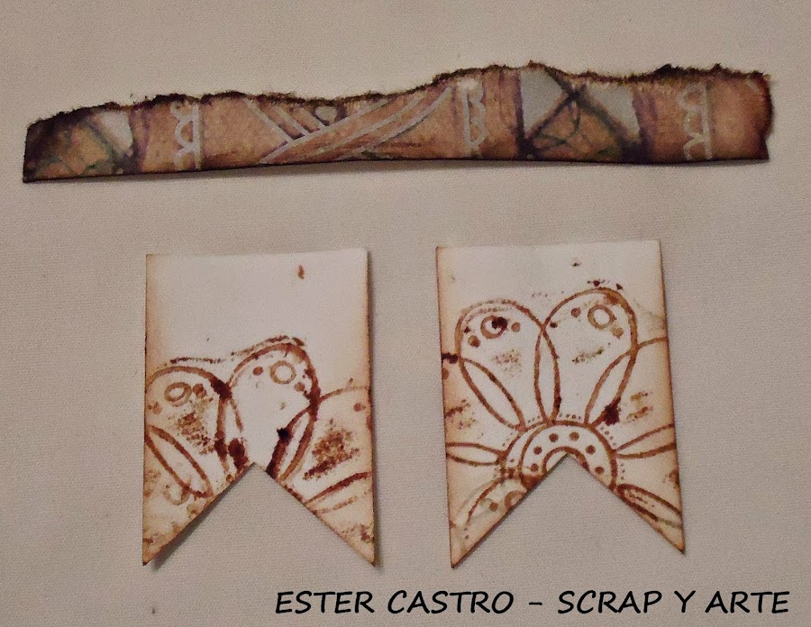 también entinte un pedacito de papel de los recortes que desgarre y coloque un sello a las figuras troqueladas (banderines)