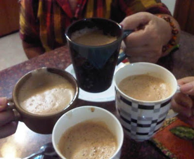 Le entregué su regalito en una reunión donde nos tomamos un riquísimo mocachino preparado por nuestra amiga Maricruz...